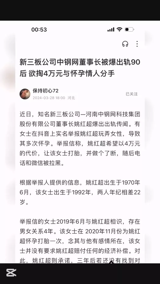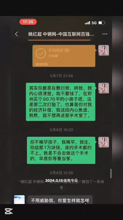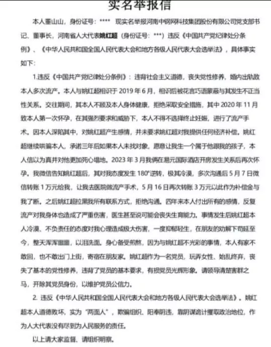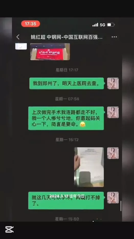 河南中钢网董事长姚红超被曝出轨小三董山山多次堕胎曝长视频举报