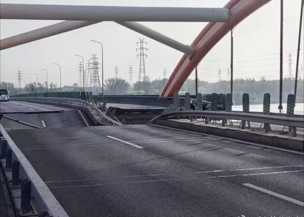 网传北京顺义区彩虹桥起火坍塌桥面整段崩毁交通瘫痪