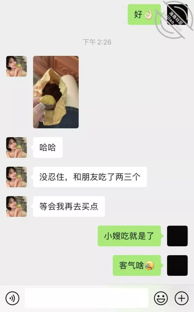 咱就是想偷拍都不知道从何下手,小嫂子要上班,我也要上班,回家后又是“各找各妈各回各房”的感觉,不过小嫂子今天倒是主动在聊天软件上叫我明天出去开小灶,当然是真真实实的开小灶吃饭,不是别的,是别的就更好了,我肯定不装君子了,今天回家也还是没看见小嫂子,因为她朋友过生日,就希望她不要喝太多酒吧, 酒这个东西喝起来就上头,想起来也是有点不放心,没啥图片放,放个简单的聊天记录和小嫂子的今日朋友圈吧,迷茫了迷茫了……