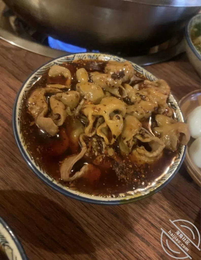 后来菜上齐了,我期间不断用公筷给小嫂子夹菜、递纸巾,看得出来小嫂子今天也很开心,还给我倒了点她调的蘸料,还很开心的跟我说她知道有家店很好吃下次带我一起去打卡,不过这家大肠真的一绝,特别赞!经过今天的相处下来,小嫂子这算是对我敞开心扉了嘛?