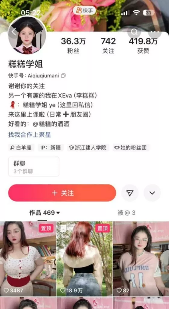 抖音和快手平台上的知名网红【糕糕学姐】本名任静怡。她最初以网黄和福利姬的身份积累财富,随后成功转型为快手的新晋带货博主。在获得了广泛关注后,眼尖的老司机认出了她,并曝光了一些尺度较大的私密视频。